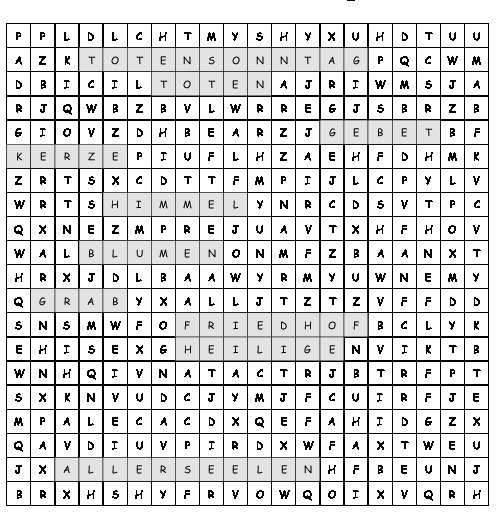 Allerheiligen kostenlos als fertiges Arbeitsblatt (PDF-Datei, 250kb) herunterladen und in Ihrem Unterricht (Schule oder Kindergarten) einsetzen.
